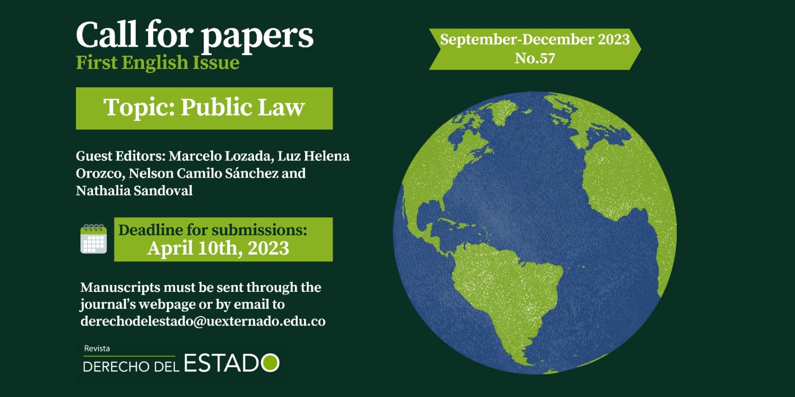 The Revista Derecho del Estado, a Scopus-indexed journal of the School of Law of Universidad Externado de Colombia, invites the academic community to submit articles for its first full-English issue. With over 25 years of commitment to promoting and disseminating academic research in public law, the journal is now seeking to globalize the scientific dialogue and connect the legal academy in the Global South and North.