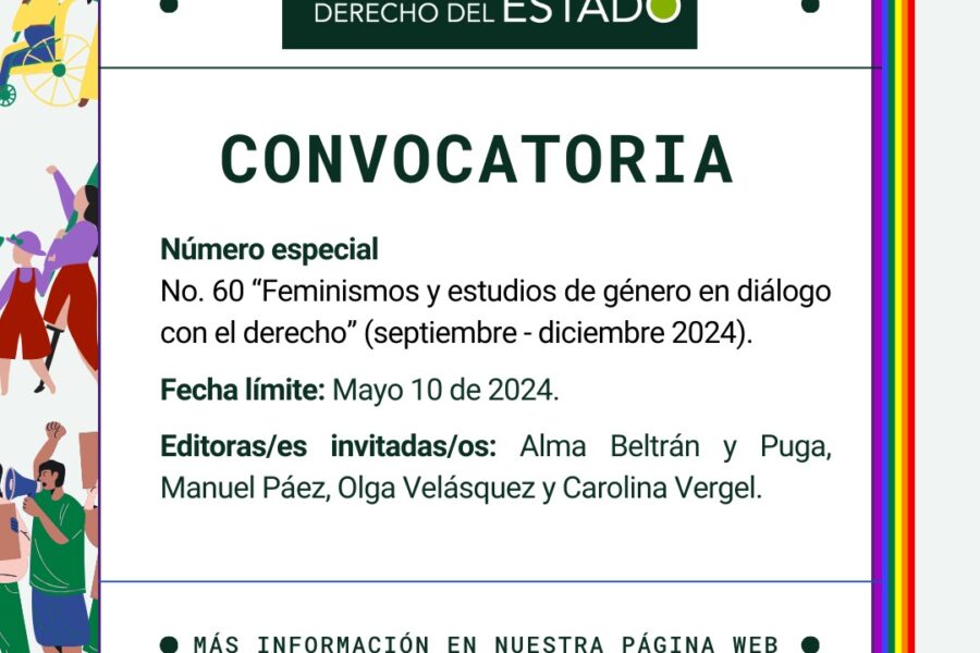 ¡La Revista Derecho del Estado les invita a enviar su contribución para nuestro próximo número especial!Buscamos investigaciones innovadoras y reflexiones creativas sobre cómo el feminismo, los estudios de género y la teoría queer transforman el ámbito jurídico. Los feminismos y los estudios de género se han convertido en pilares fundamentales […]